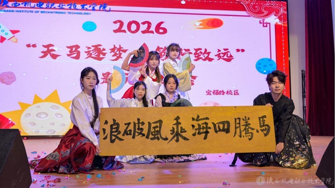 12月29日,我校在宝福路校区大礼堂、蟠龙校区大学生活动中心举办以“天马逐梦,笃行致远”为主题的2026元旦晚会。机电学子齐聚一堂,用歌舞、小品、朗诵等多样形式,共赴盛宴。